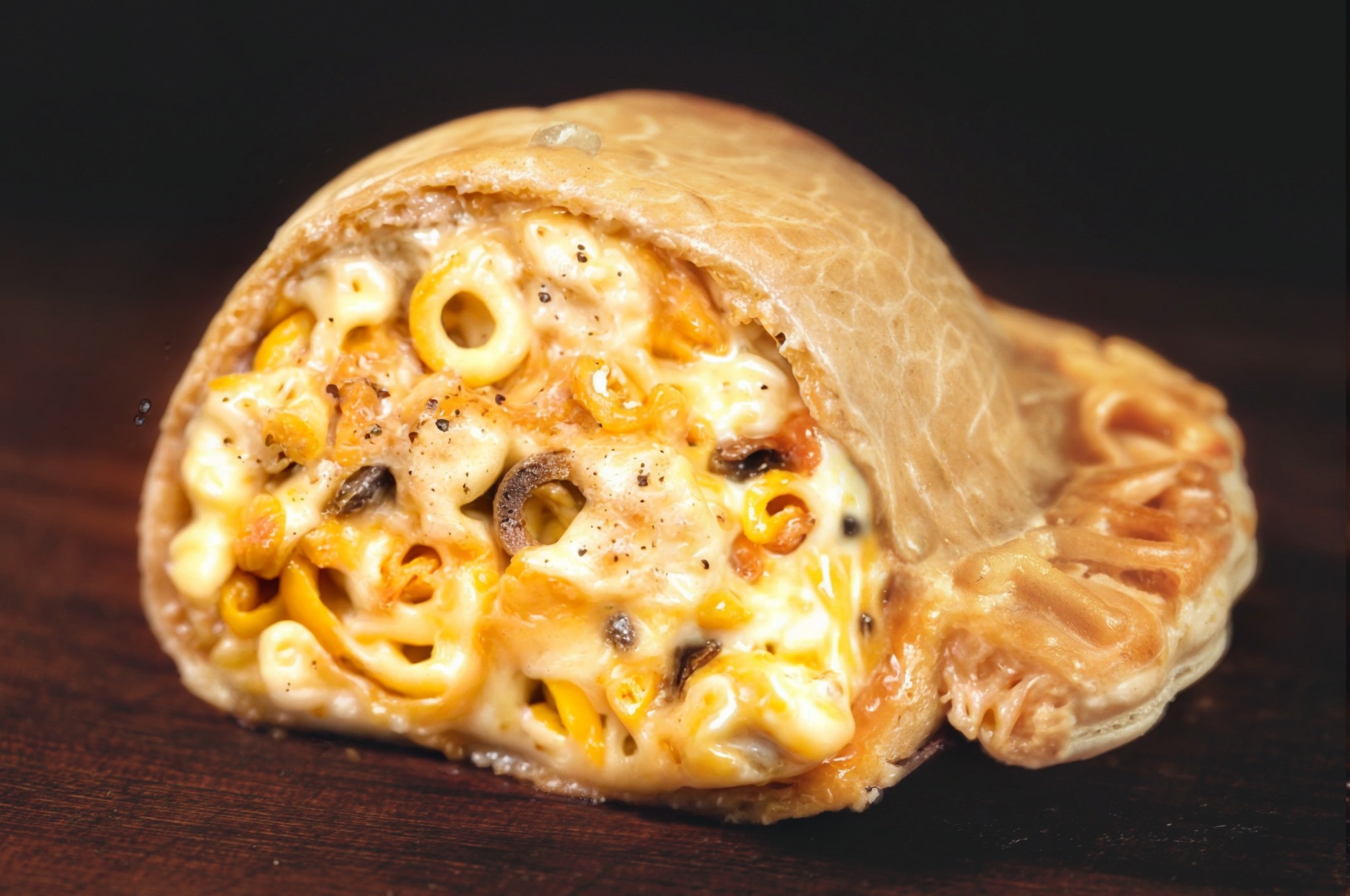 “Cheese lovers rejoice! Our Provolone y Olivas empanada showcases the perfect marriage of stretchy, mild Provolone cheese and plump, briny Kalamata olives. We use aged Provolone for its excellent melting qualities and subtle sharpness, which pairs beautifully with the bold, fruity olives. The filling is generous yet balanced, allowing both ingredients to shine without overpowering our delicate, golden crust. Baked until the cheese is perfectly gooey and the crust develops that irresistible flaky texture, this vegetarian empanada proves that simplicity done right is absolutely extraordinary.”